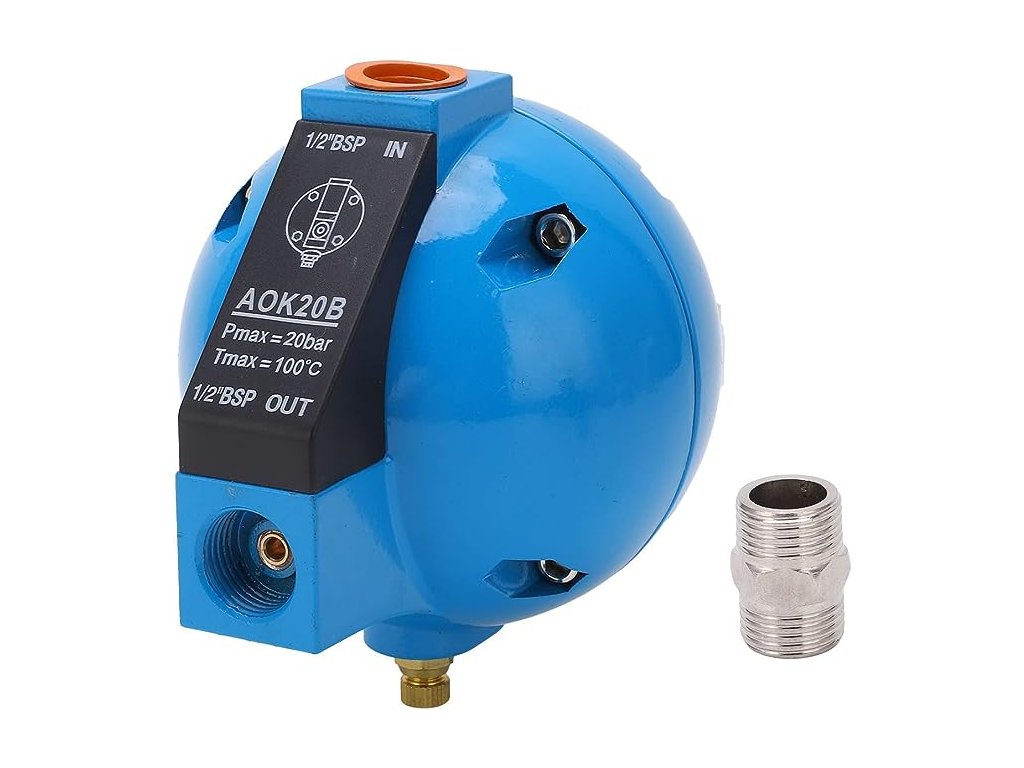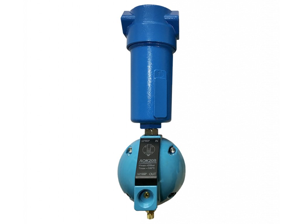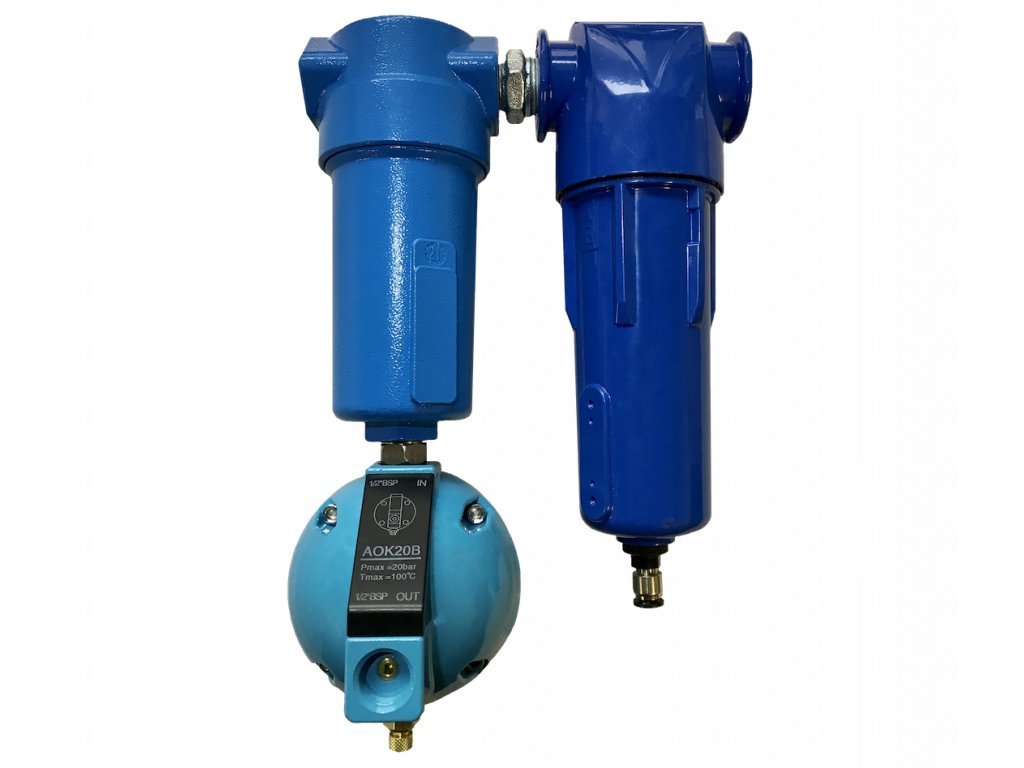 Plovákový odvaděč kondenzátu automaticky odvádí nežádoucí zkondenzovanou vodu ze vzdušníku, filtru nebo separátoru v systémech stlačeného vzduchu na výstupu pístových kompresorů s tlakem do 16 bar. Externí (vnější) odpouštěč kondenzátu se montuje pod tlakovou nádobu, filtr nebo separátor se vstupním rozměrem závitu G 1/2". Plovákový odvaděč kondenzátu je určen pro námi prodávané filtrační sestavy Profi, Industry a jiné výrobce filtrů a separátorů stlačeného vzduchu vycházejícího z olejového kompresoru. Externí plovákový odvaděč kondenzátu má jednoduchou montáž s napojením výstupního potrubí se závitem G1/2" a také s možností manuálního odkalení ventilem na spodní části. Lehké a přitom pevné hliníkové tělo plovákového odvaděče je zkonstruováno tak, že automaticky funguje bez využití elektrické energie s rychlostí odvodu zkondenzované kapaliny 400l/h.