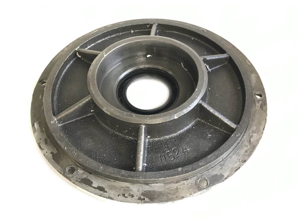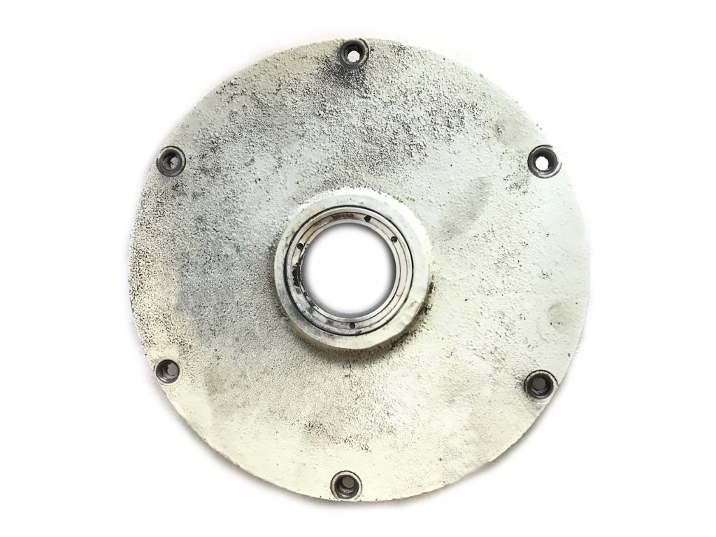 Zadní víko skříně kompresoru ČKD JVK 120, kterým prochází kliková hřídel. Náhradní díl pro servis nebo generální opravu olejového kompresoru ČKD Žandov.