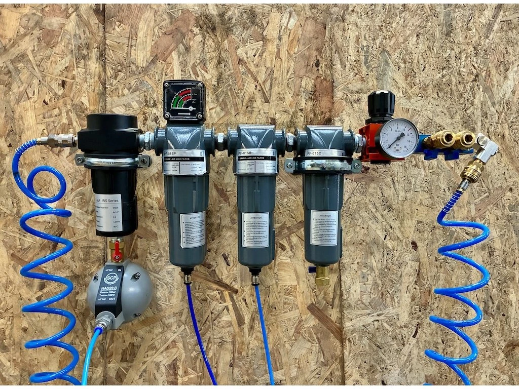 INDUSTRY sestava filtrů s regulátorem je sestavena pro profesionální lakýrníky (autolakovny, lakovny). Filtry stlačeného vzduchu jsou určeny do průtoku 1500 l/min | 90 m3/h s připojením vnitřního závitu G 1/2". Sestavu tvoří kompletní kaskáda filtrace pro nejpoužívanější třídu čistoty stlačeného vzduchu v průmyslu dle jediné rozšířené normy DIN ISO 8573 a to do třídy čistoty vzduch 1-4-1, pochopitelně při zapojení sušičky vzduchu, která zaručí maximálně čistý a suchá vzduch potřebná pro kvalitní lak. Filtry se vyznačuje zejména profesionálním robustním kovovým provedením, zaručující vysokou stabilitu i při změnách teplot a zejména dlouhodobě odolává vibracím. Maximální vstupní tlak do filtrů může být až 16 bar | 1,6 Mpa.