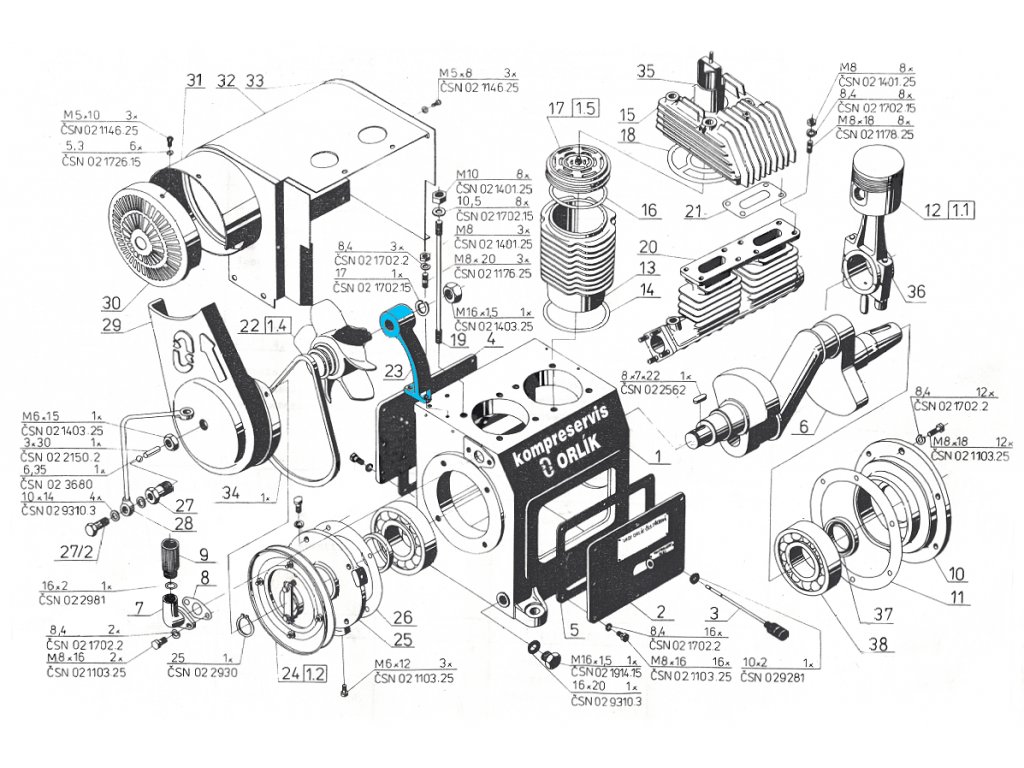Konzole ventilátoru pro kompresory Orlík 1 JSK, 2 JSK, 3 JSK a 3 DSK. Náhradní díl pro servis nebo generální opravu kompresoru Orlík 3 DSK. Jedná se o velmi těžko dostupný díl vzhledem k malým nepravidelným výrobním sériím. Zasíláme nový, případně při výpadku výroby použitý, v dobrém stavu.