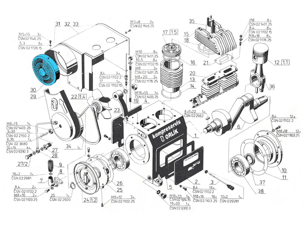 Plastový kryt řemenice a řemenu určený pro kompresory Orlík 1 JSK, 2 JSK, 3 JSK a 3 DSK. Náhradní díl pro servis nebo generální opravu kompresoru Orlík 3 DSK.