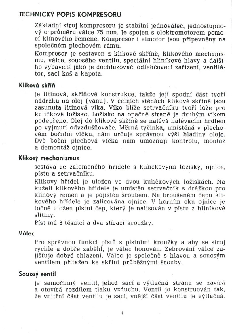 - POPIS A NÁVOD K OBSLUZE PÍSTOVÉHO KOMPRESORU ORLÍK 1JSK - 75 - S