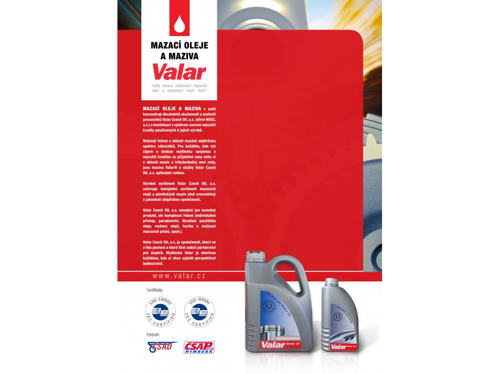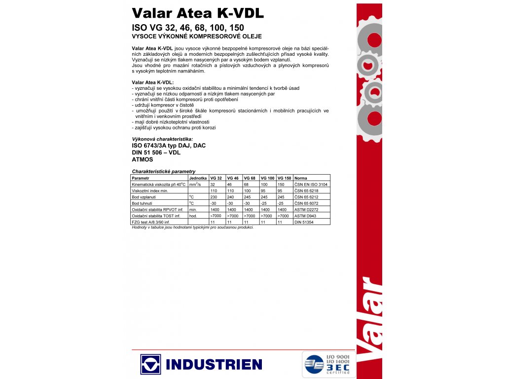 Kompresorový olej Valar VDL 100 je určen pro pístové kompresory VKDI Orlík JSK 75 ve všech variantách jednoválec, dvouválec i tříválec včetně dvoustupňových variant Orlík DSK 75. Jedná se o nejkvalitnější minerální olej z hydrokrakovaného základu díky kterému dosahuje vysokých stabilit i při náročném namáhání. Díky bezpopelnému složení daleko přesahuje základní parametry specifikace VDL a tím se odlišuje od ostatních minerálních olejů do pístových kompresorů a výrazně posouvá schopnosti nad původně doporučovaný olej M6AD až na trojnásobně dlouhý interval výměny oleje ve vzduchovém kompresoru Orlík JSK 75.