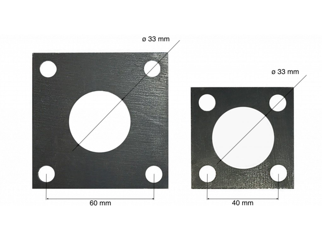 Příruba malá - rozteč šroubů 40 mm, ø díry 33 mm, rozměry 60 x 60 x 10 mm