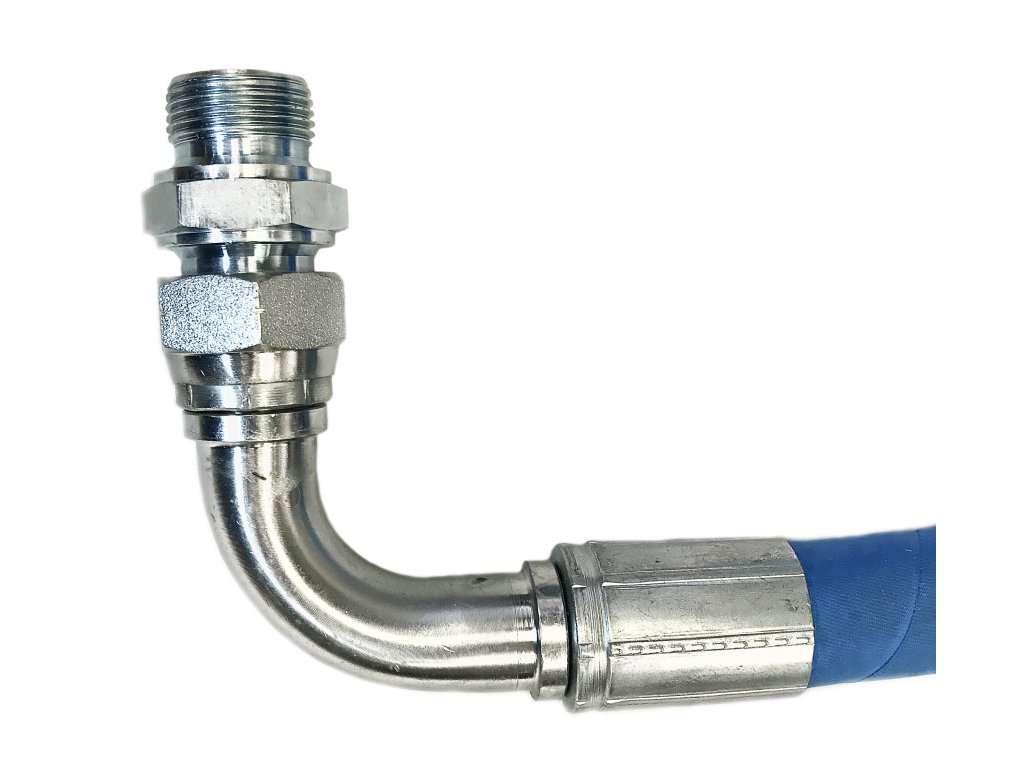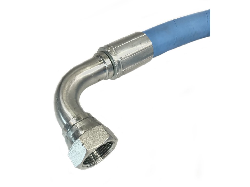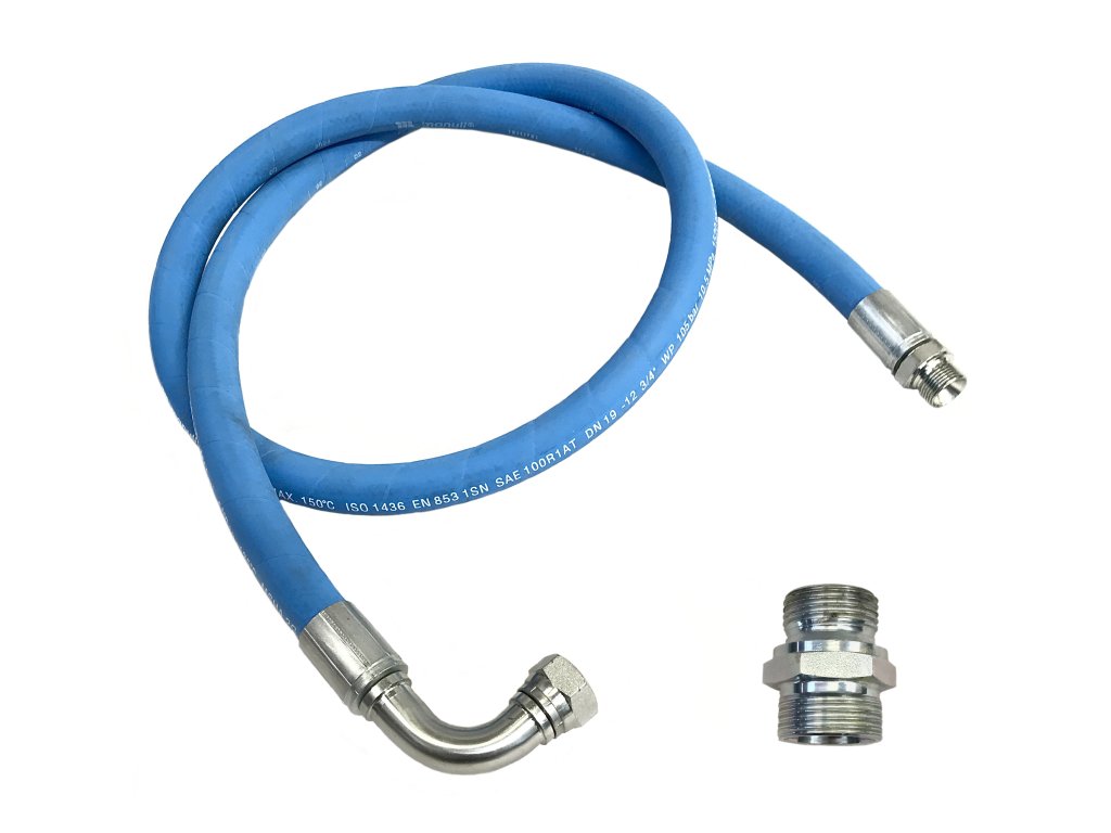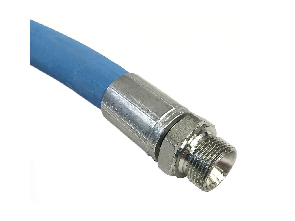 Na obou koncích je vnější závit 3/4" s možností vyšroubování samostatného niplu 3/4" z převlečné matice pro jednodušší montáž u statických strojů. K objednávce můžeme přidat potřebnou redukci pro zapojení k Vaší tlakové nádobě (do objednávky napište objem tlakové nádoby nebo otvor kam chcete hadici připojit).