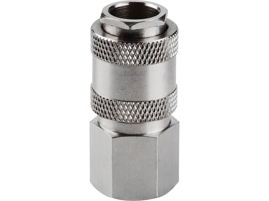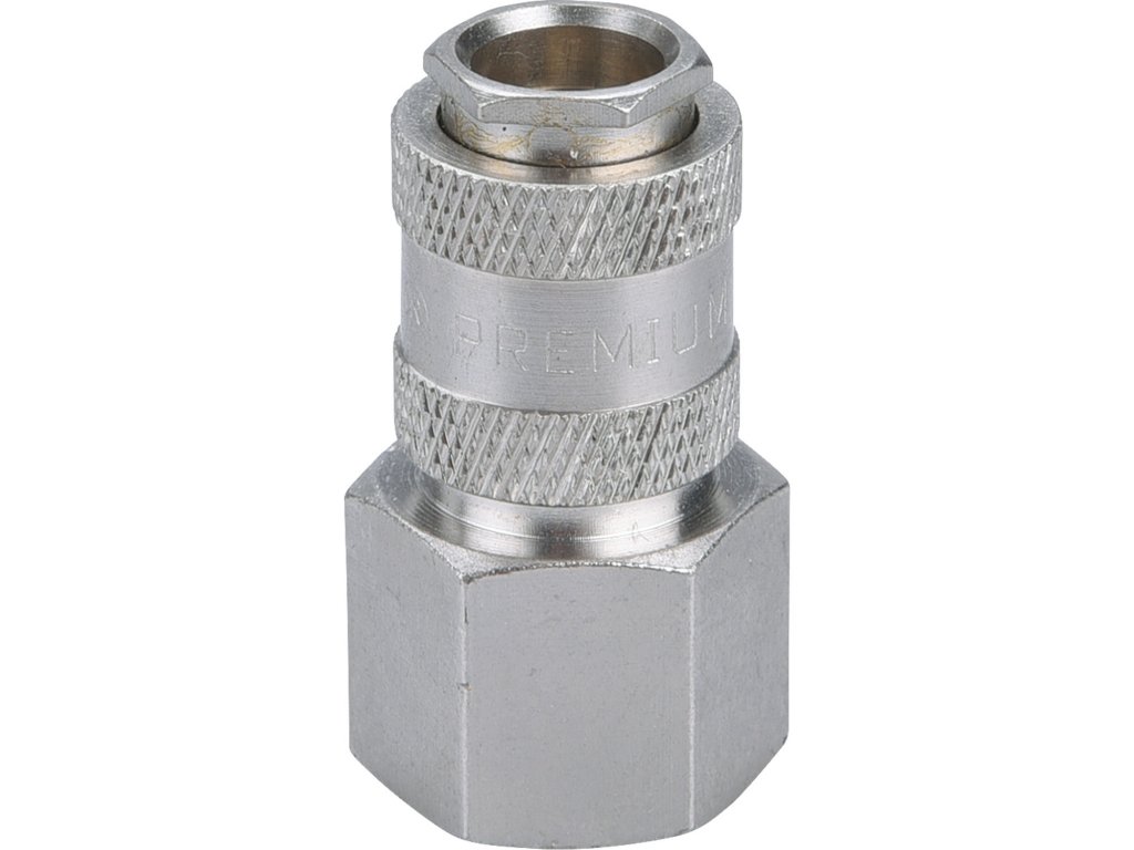 Rychlospojka s vnitřním závitem a zásuvkou (samice). Ovladatelné jednou rukou.