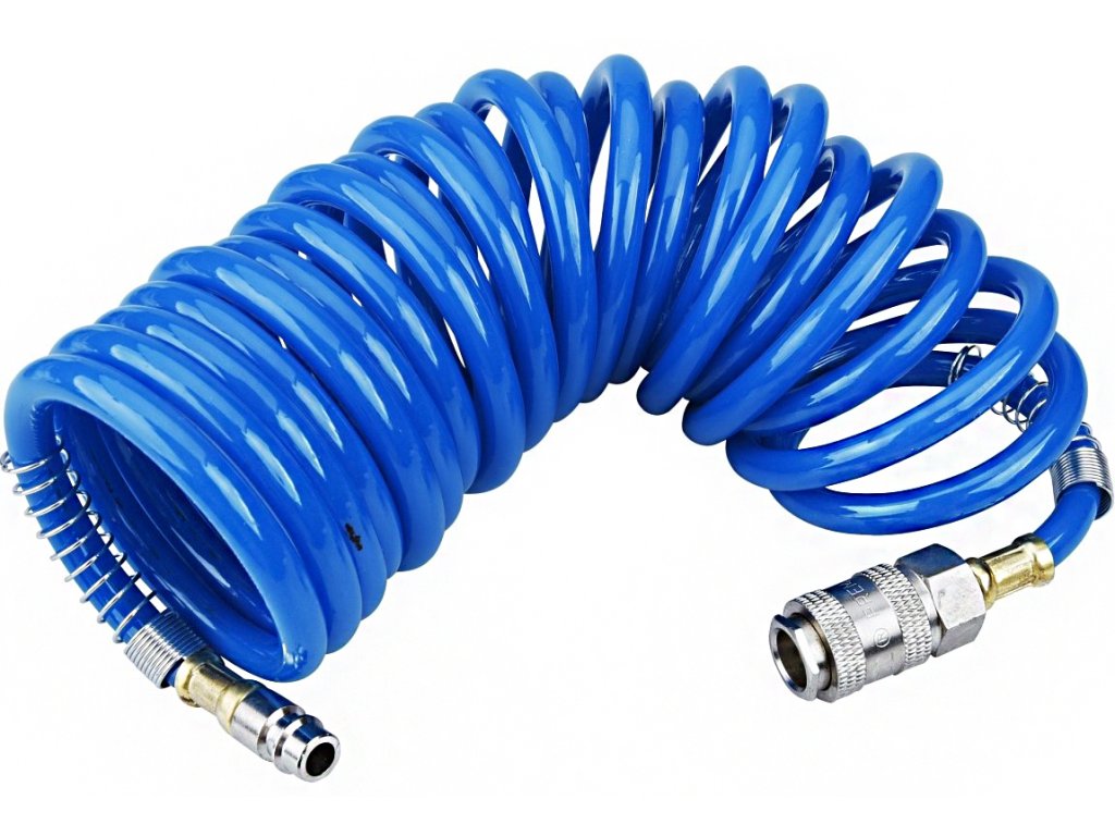 Spirálová hadice z PU - polyuretan vyznačuje vysokou odolností proti zlomení, otěru a tlaku. Určeno pro flexibilní přívody stlačeného vzduchu u pneumatického nářadí, ofukovacích pistolí a stříkací techniky. Vzduchová hadice má vnitřní průměr 8 mm, vnější průměr hadice 12 mm.