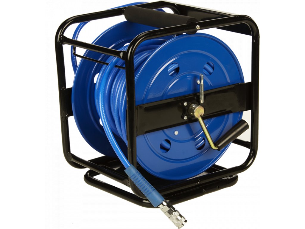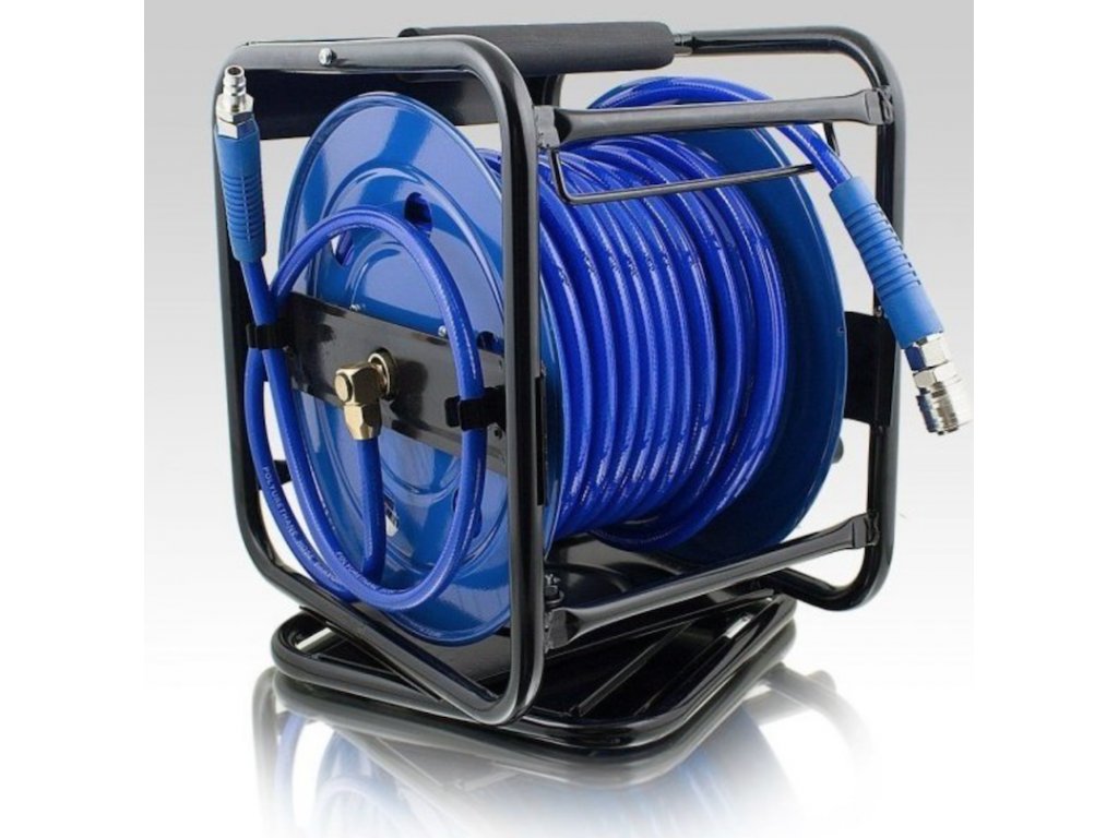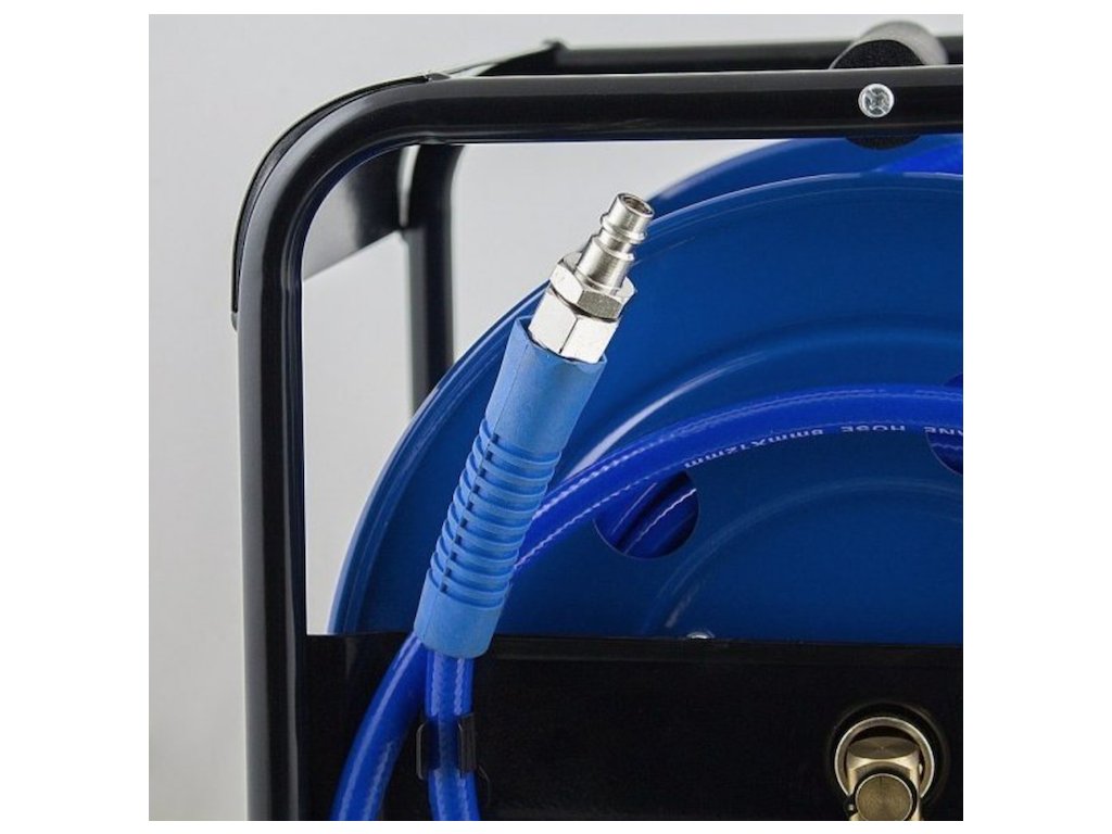Kvalitní vzduchová hadice na stlačený vzduch ke kompresorům s navijákem ve stabilním rámu umožňující otáčení o 360 ° a tím zabraňuje kroucení tlakové hadice. Ideální pneumatická hadice z odolného polyuretanu vhodná pro profesionály i kutily s ochranou proti vzpěrnému tlaku na přípojku. Na konci pneumatické hadice je univerzální rychlospojka pro rychlé připojení ke kompresoru a pneumatického nářadí. Vnitřní průměr tlakové hadice je 8 mm a vnější průměr 12 mm.